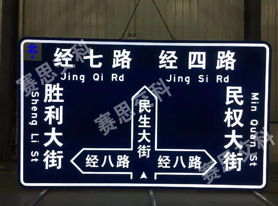 近日,濟(jì)南民生大街新添一批“半透式主動發(fā)光指路標(biāo)志”,由南京賽思交通信息科技有限公司研制、生產(chǎn)。該標(biāo)志采用主動發(fā)光工藝,不需要依賴外部光源照射,標(biāo)志體內(nèi)置光源投射標(biāo)志面,形成筆畫飽滿、對比度高的標(biāo)志發(fā)光信息,將指路標(biāo)志的交通語言信息在全天候展示得淋漓盡致,為整個民生大街添色不少,用主動發(fā)光來關(guān)乎“民生”出行更加安全。