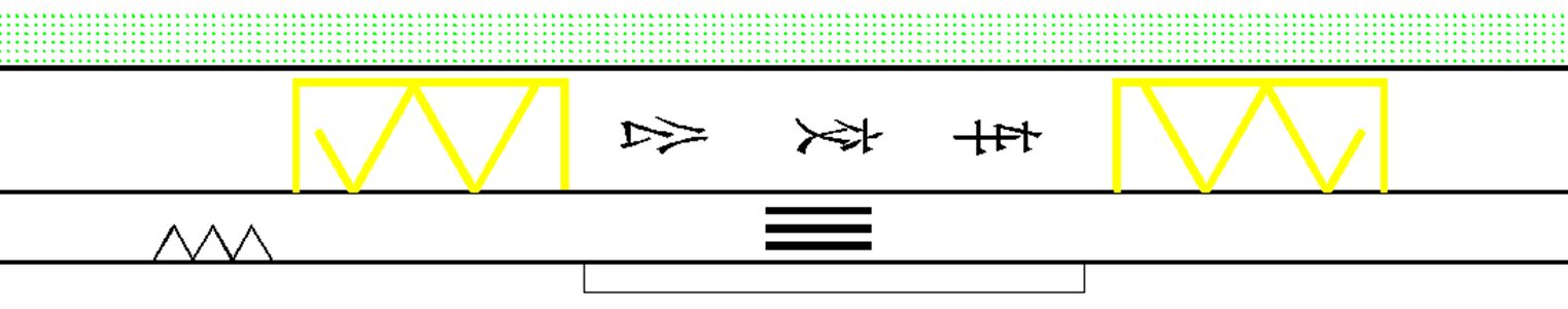 臨近公交站臺上游的恰當位置,提前設置“路邊式公交站臺”指示標志和“人行橫道”指示標志,根據需要,可設置“注意行人”警告標志,采用單立柱或附著式安裝方式,詳見下圖: