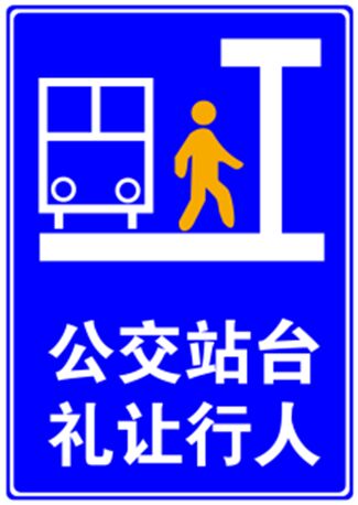 為加強提醒非機動車注意前方公交車輛下客情況,提前做好減速慢行準備,可酌情設置指示標志,版面可參考下圖所示,若夜晚,周圍光照環境不佳,建議采用主動發光標志,不僅加強指示的醒目性,同時也照顧自身無光照條件的非機動車騎乘人。
