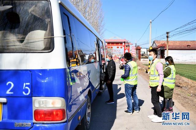 2月22日,復工直通車在山東濟南歷城區李官莊村接載返崗復工村民。 新華社記者 朱崢 攝