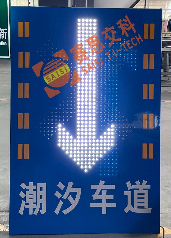 1、基本說明:標志框體內采用數碼布點,嵌入密集LED發光點陣,采用固定電路開板,顯示獨立的箭頭、紅叉LED圖案,根據交通組織需要,分時段切換。