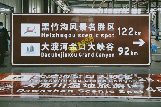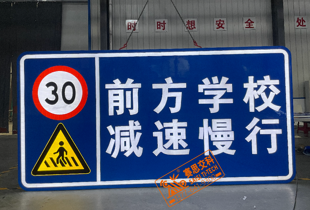 “內置LED投射”工藝,主要包括:半投射(半透)和全投射(全透)兩種。半投射工藝,僅適用于版面的文字、字符、圖案、邊款線等為白色的標志(如:指路標志、指示標志、旅游標志等),因為深色系的反光膜透光率低,不能滿足行業標準《內部照明標志》中關于“透光率大于20%”的指標要求,而常常有些指示標志中,會加入禁令、警告標志,這種組合型標志,就需要多種工藝來實現。在我們“賽思企業標準”中,通常這樣處理:對于小型標志(面積小于4平方米),采用全投射工藝;對于大型標志(面積大于4平方米),其中白色圖案部分采用“半投射工藝”,深色系圖案部分采用“全投射工藝”(如下圖),或外置LED點陣工藝。